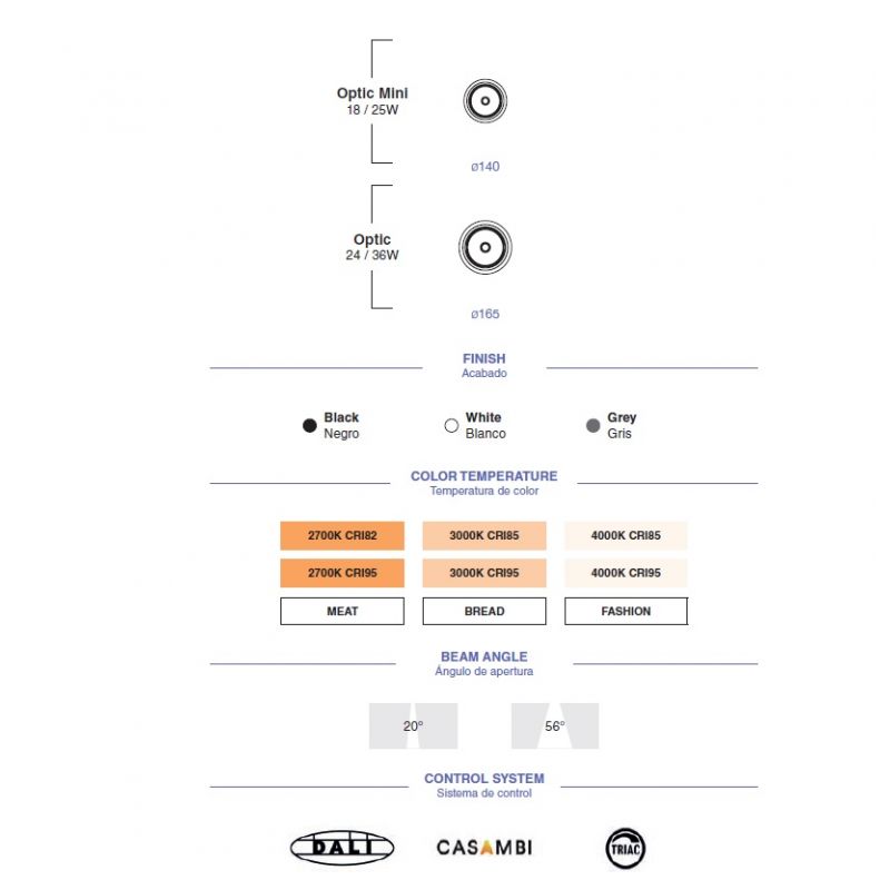 Spotul OPTIC este un corp de iluminat încastrat care poate fi pivotat pe axa orizontală. Creează atmosfera perfectă pentru spațiile comerciale, restaurante și hoteluri, precum și în săli de expoziție sau muzee. Seria eleganta si minimalista, unde accentul se pune pe obiectele pe care le lumineaza.