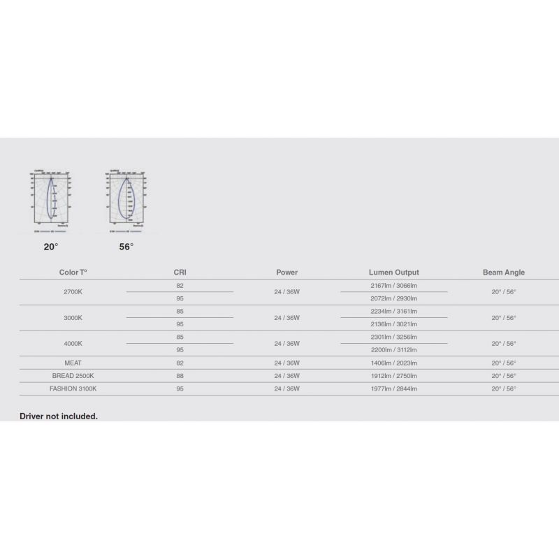 Putere | 25Watt modul LED COB dimabil incorporat,1850LM, 2700K, CRI 82, driver exclus din pret ( Dali, Casambi sau Triac) |