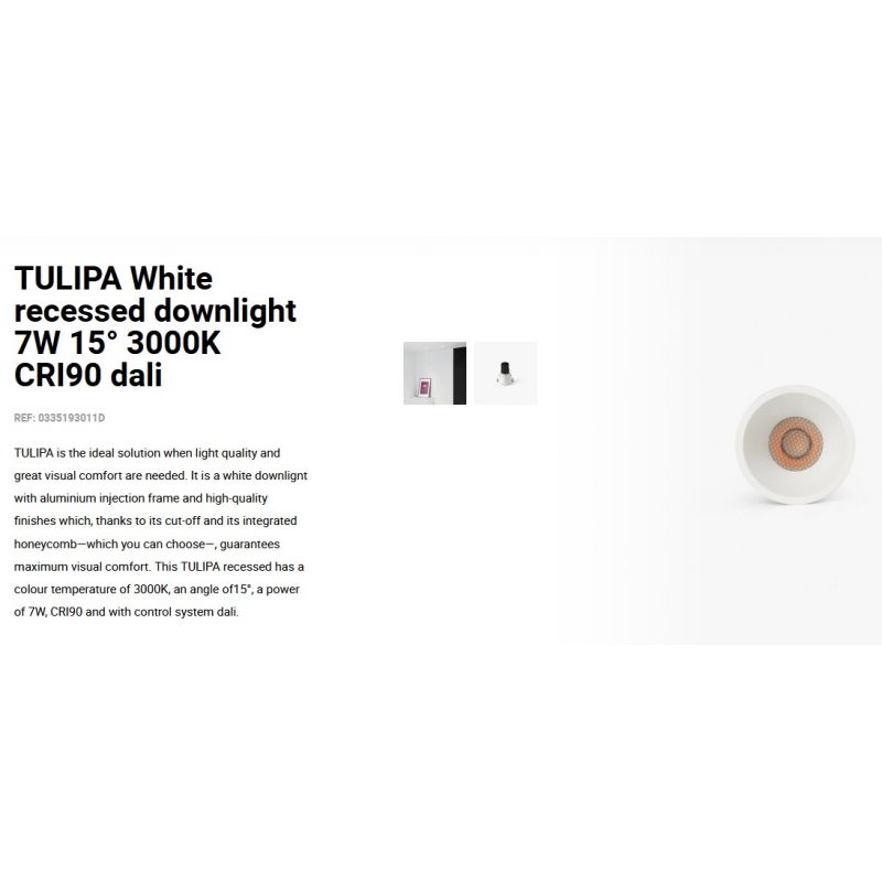 Informatii produs: | spot LED incastrabil TULIPA cu grad de iluminare 15 grade, IP20 + driver cu sistem de control Dali inclus |