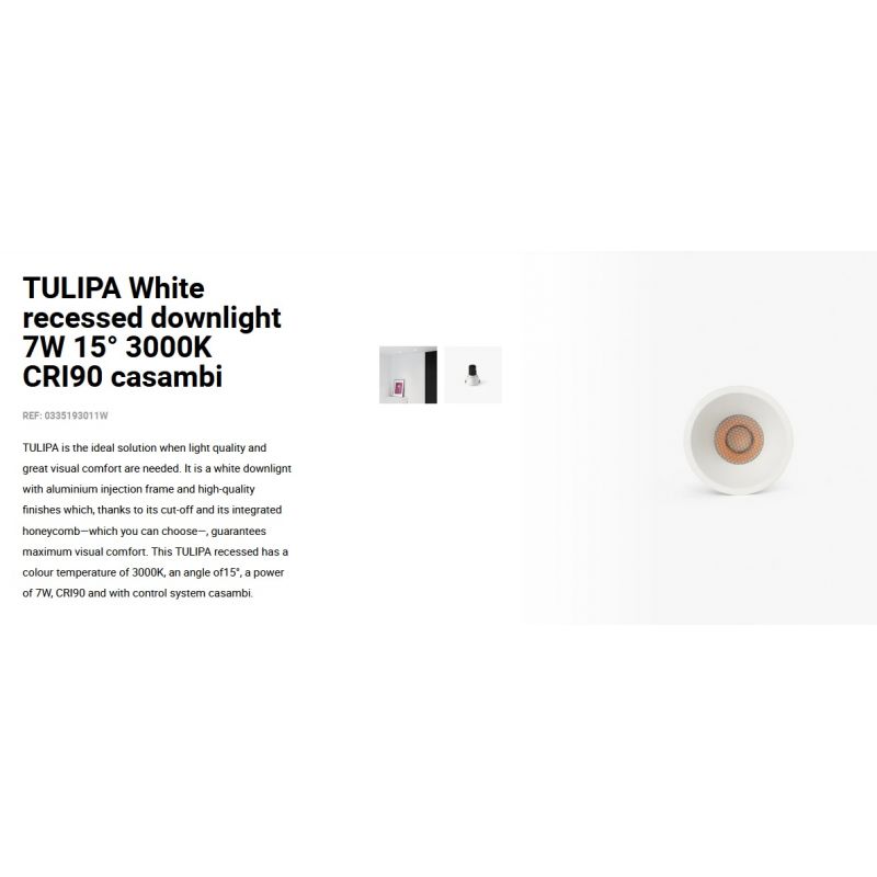 Informatii produs: | spot LED incastrabil TULIPA cu grad de iluminare 15 grade, IP20 + driver cu sistem de control Casambi inclus |