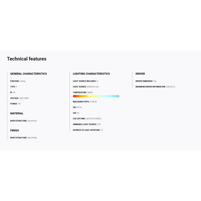 Dimensiuni | diametru:8,2cm; inaltime:10,6cm; diametru decupaj tavan:7,6cm |