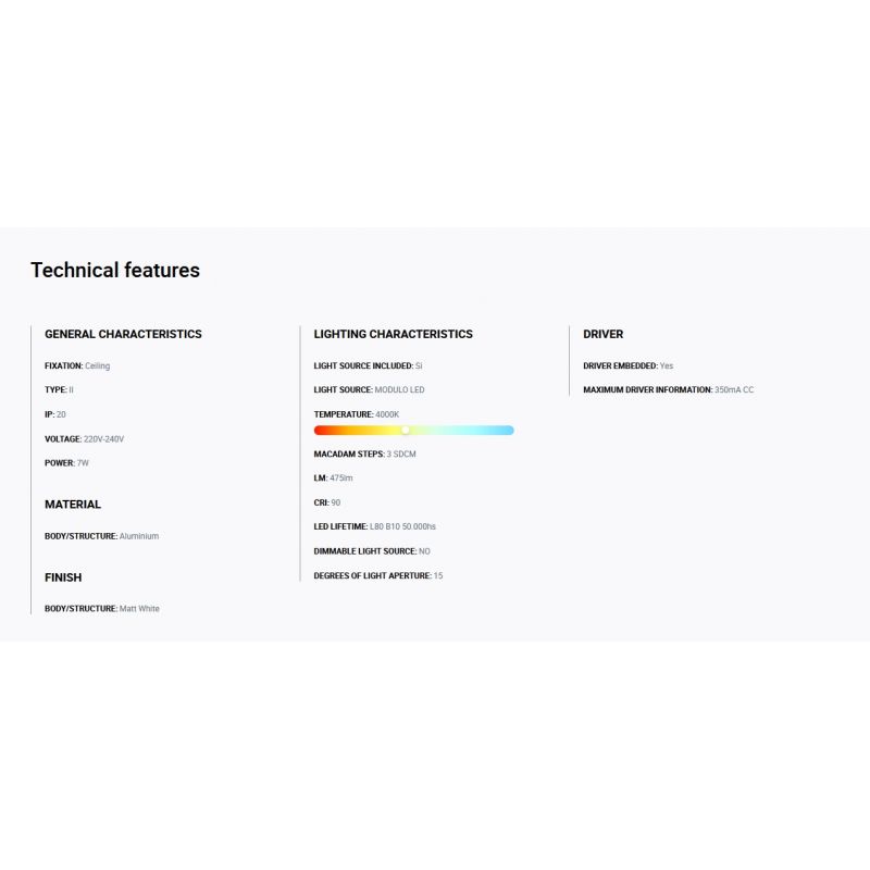 Putere | 7Watt modul LED incorporat, 475LM, 4000K, CRI 90 + driver inclus din pret |