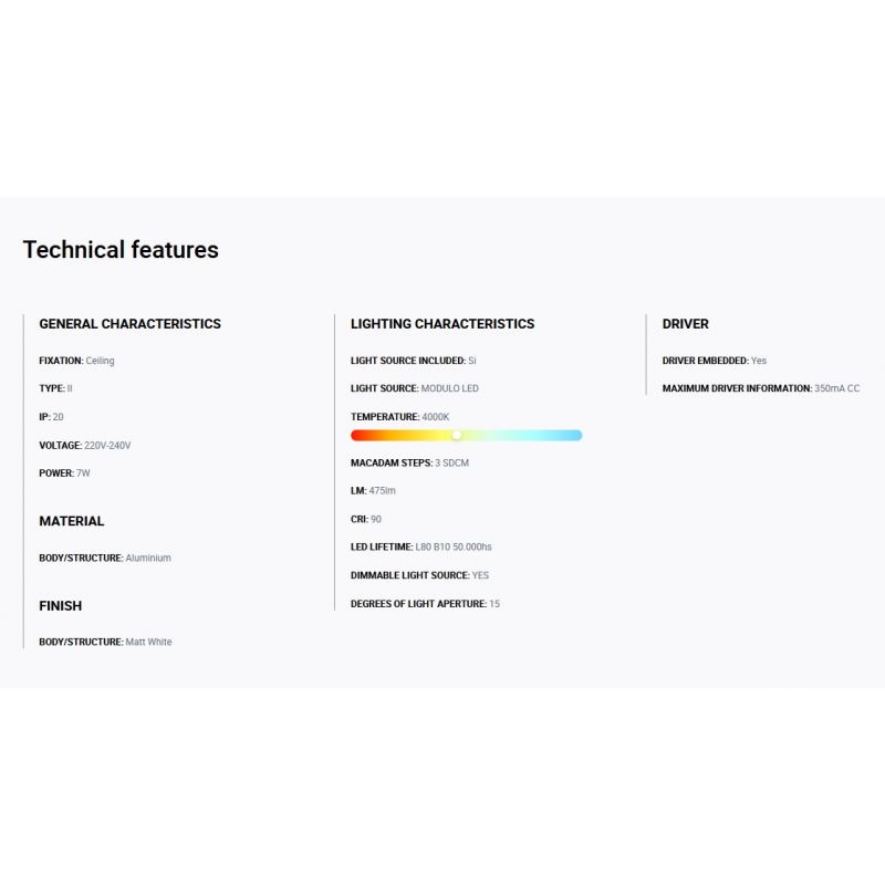 Informatii produs: | spot LED incastrabil TULIPA cu grad de iluminare 15 grade, IP20 + driver cu sistem de control Dali inclus |