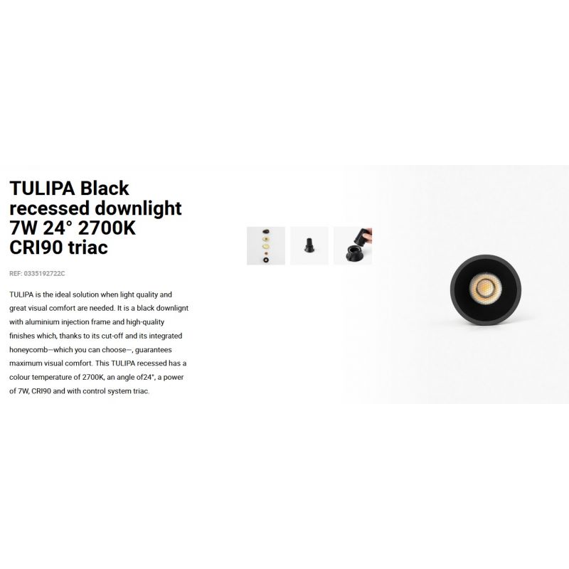 Informatii produs: | spot LED incastrabil TULIPA cu grad de iluminare 24 grade, IP20 + driver cu sistem de control Triac inclus |