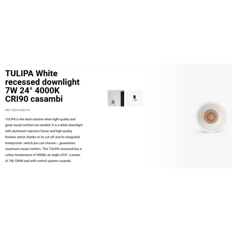 Informatii produs: | spot LED incastrabil TULIPA cu grad de iluminare 24 grade, IP20 + driver cu sistem de control Casambi inclus |