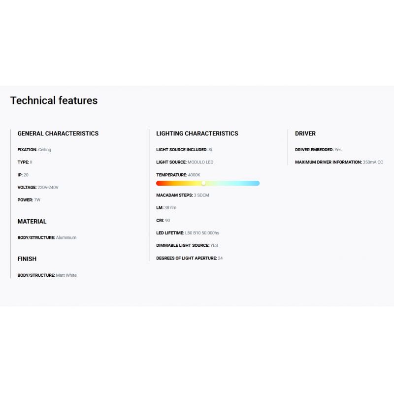 Putere | 7Watt modul LED incorporat, 387LM, 4000K, CRI 90 + driver inclus din pret |