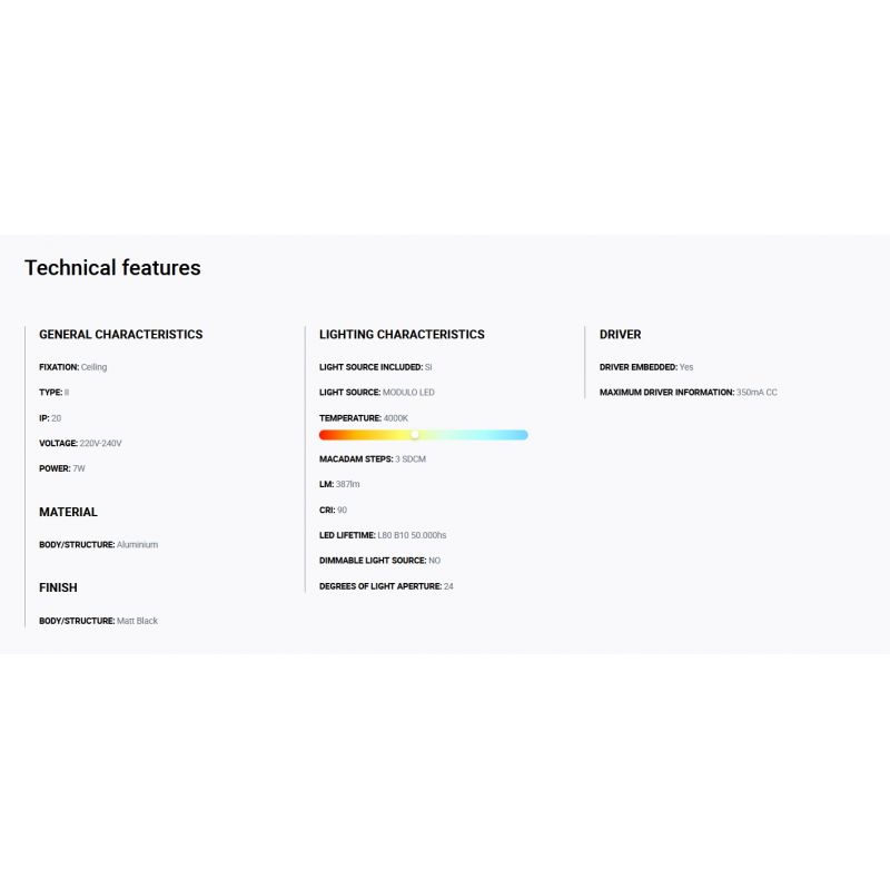 Putere | 7Watt modul LED incorporat, 387LM, 4000K, CRI 90 + driver inclus din pret |