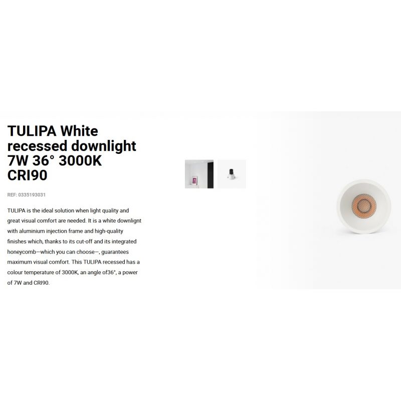 TULIPA este soluția ideală atunci când este nevoie de calitatea luminii și de un confort vizual deosebit. Este un spot incastrabil cu cadru de injecție din aluminiu și finisaje de înaltă calitate care garantează confort vizual maxim.