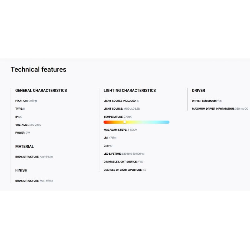 Putere | 7Watt modul LED dimabil incorporat, 476LM, 2700K, CRI 90 + driver inclus din pret |