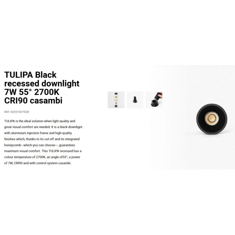 Informatii produs: | spot LED incastrabil TULIPA cu grad de iluminare 55 grade, IP20 + driver cu sistem de control Casambi inclus |