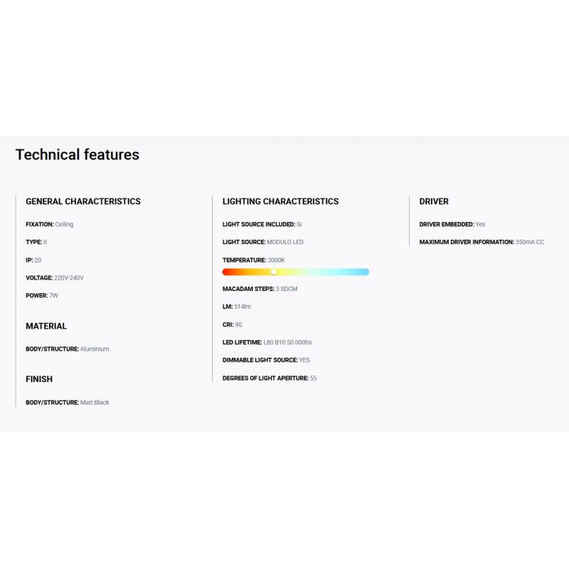 Putere | 7Watt modul LED dimabil incorporat, 514LM, 3000K, CRI 90 + driver inclus din pret |