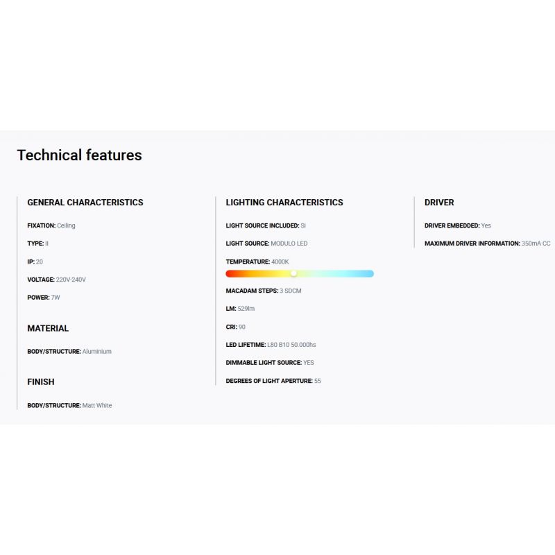 Putere | 7Watt modul LED dimabil incorporat, 529LM, 4000K, CRI 90 + driver inclus din pret |