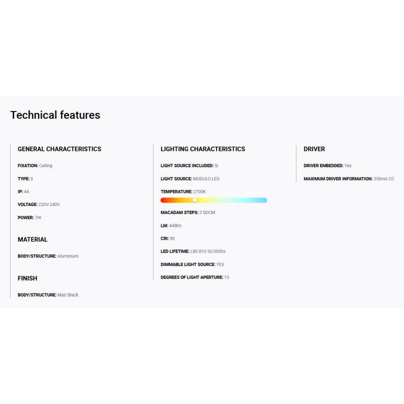 Putere | 7Watt modul LED dimabil incorporat, 448LM, 2700K, CRI 90 + driver inclus din pret |