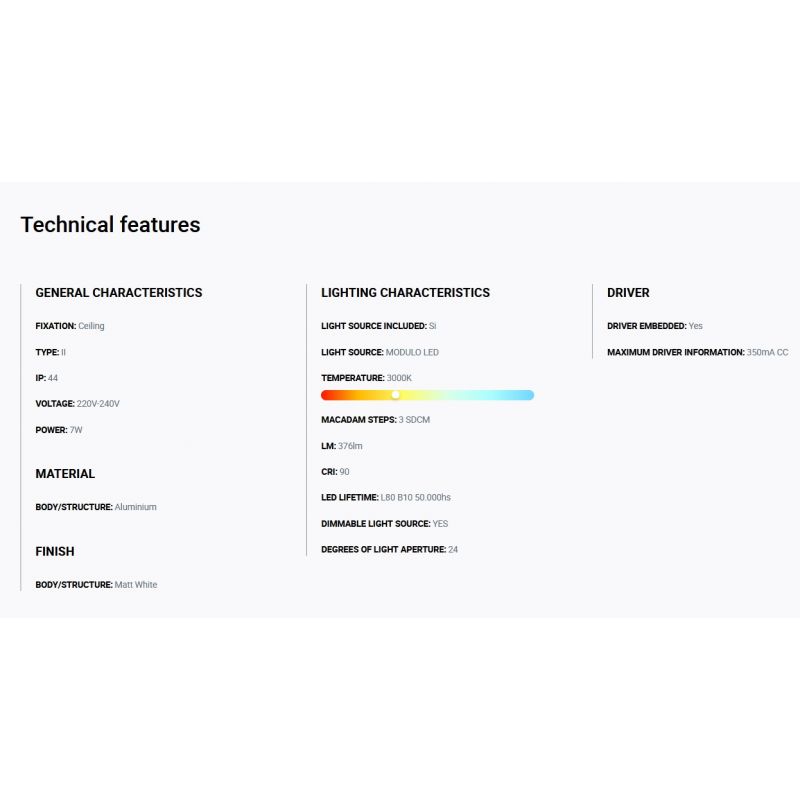 Dimensiuni | diametru:8,2cm; inaltime:10,6cm; diametru decupaj tavan:7,6cm |