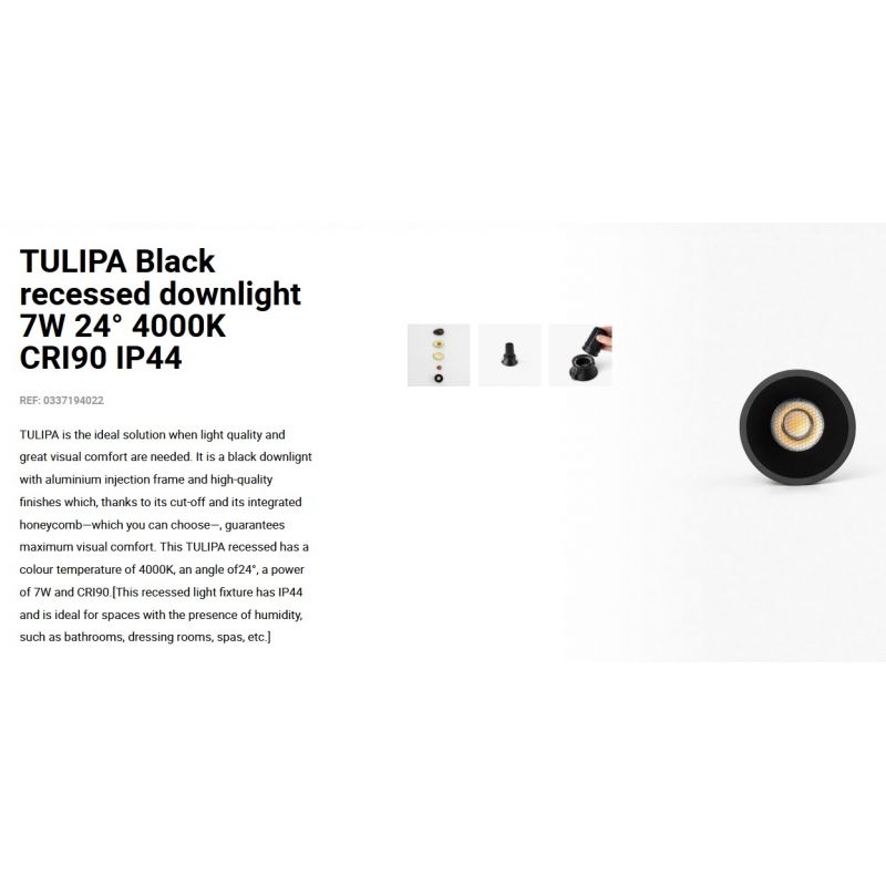 TULIPA este soluția ideală atunci când este nevoie de calitatea luminii și de un confort vizual deosebit. Este un spot incastrabil cu cadru de injecție din aluminiu și finisaje de înaltă calitate care garantează confort vizual maxim, corp de iluminat încastrat are IP44 și este ideal pentru spațiile cu prezența umidității, precum băi, dressinguri, spa-uri etc.
