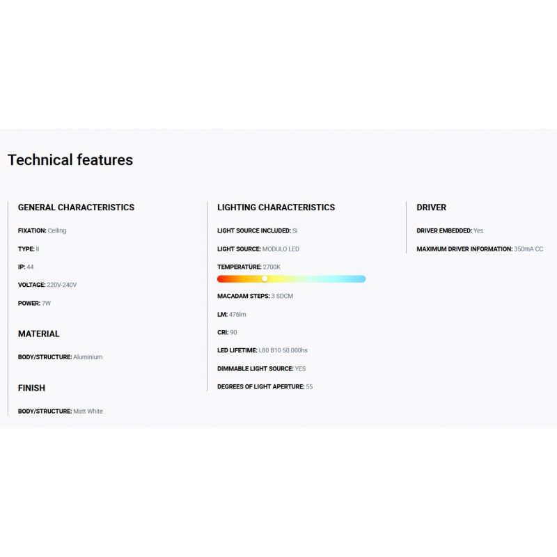Informatii produs: | spot LED incastrabil TULIPA cu grad de protectie la umiditate de IP44, iluminare 55 grade + driver cu sistem de control Triac inclus |