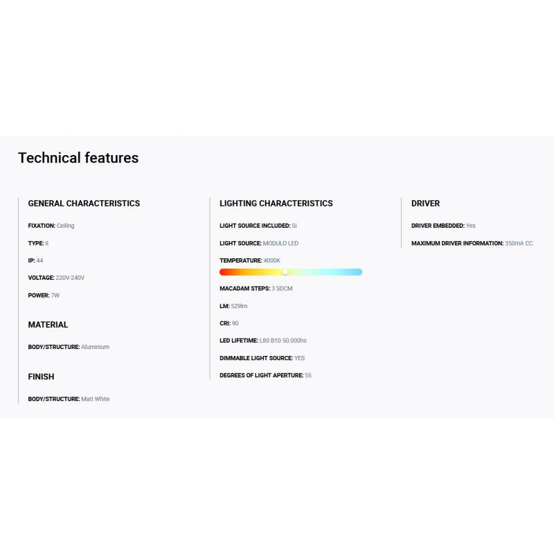 | Putere | 7Watt modul LED dimabil incorporat, 529LM, 4000K, CRI 90 + driver inclus din pret |