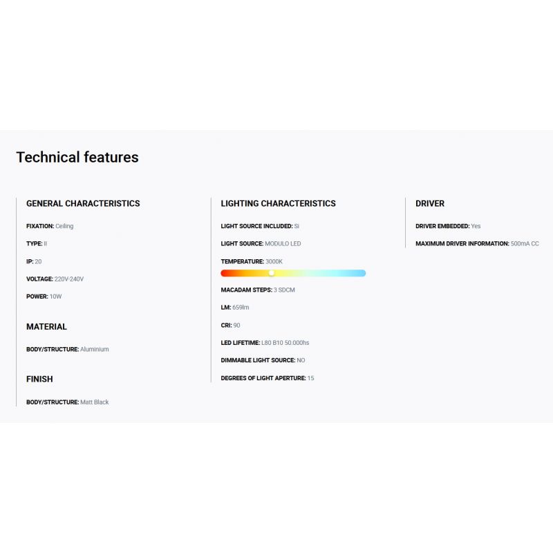 Putere | 10Watt modul LED incorporat, 659LM, 3000K, CRI 90 + driver inclus din pret |