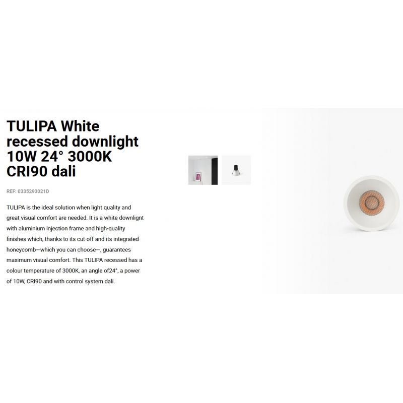 Informatii produs: | spot LED incastrabil TULIPA cu grad de iluminare 24 grade, IP20 + driver cu sistem de control Dali inclus |