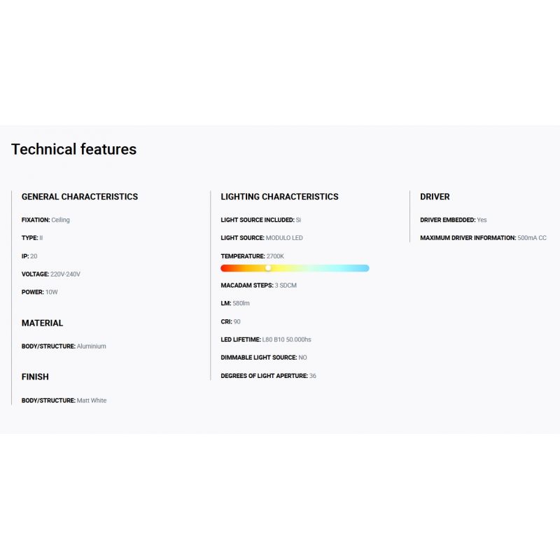Putere | 10Watt modul LED incorporat, 580LM, 2700K, CRI 90 + driver inclus din pret |