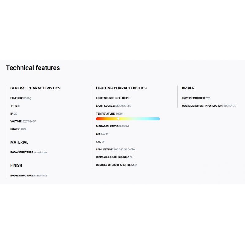 Informatii produs: | spot LED incastrabil TULIPA cu grad de iluminare 36 grade, IP20 + driver cu sistem de control Casambi inclus |