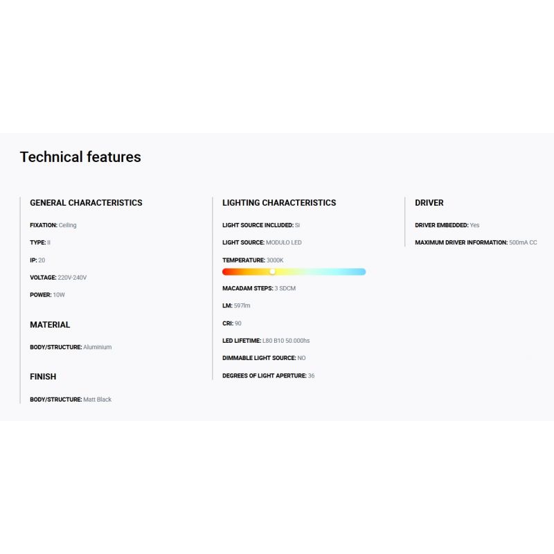 Putere | 10Watt modul LED incorporat, 597LM, 3000K, CRI 90 + driver inclus din pret |