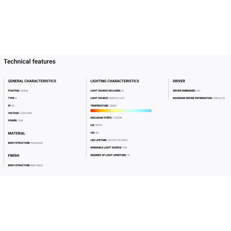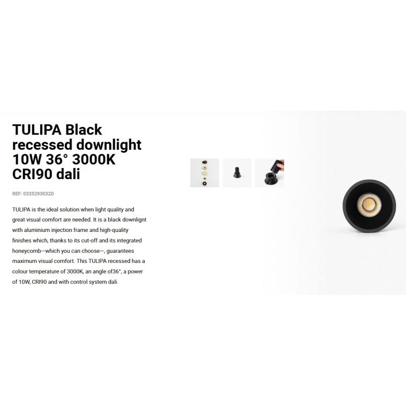 Informatii produs: | spot LED incastrabil TULIPA cu grad de iluminare 36 grade, IP20 + driver cu sistem de control Dali inclus |