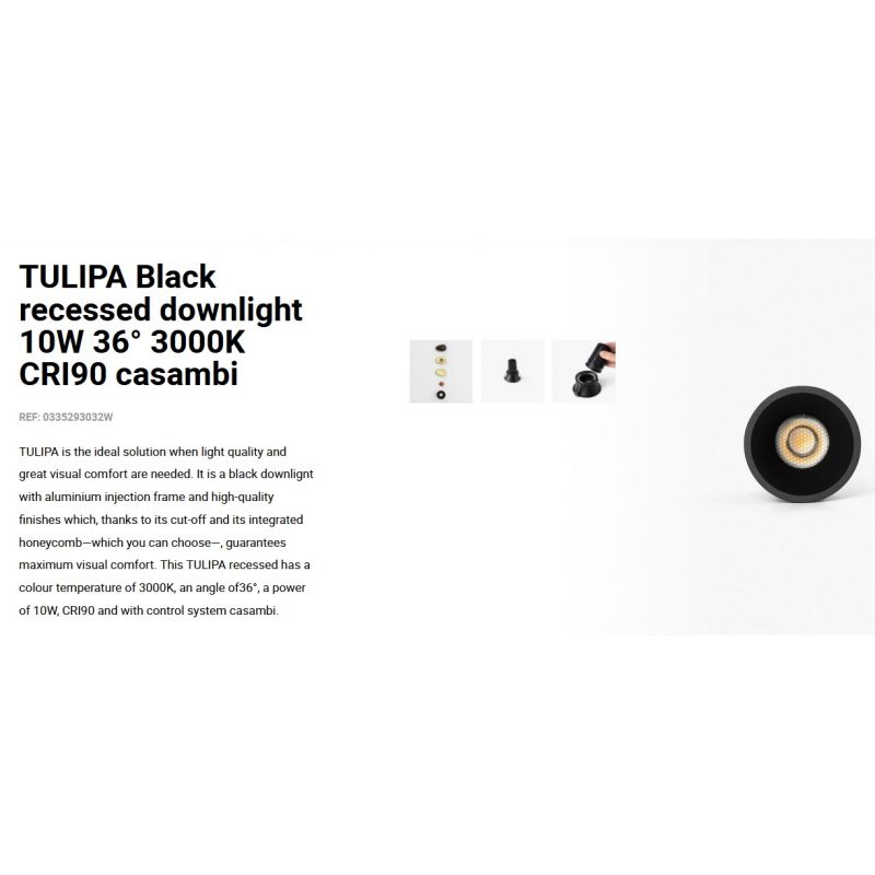 Informatii produs: | spot LED incastrabil TULIPA cu grad de iluminare 36 grade, IP20 + driver cu sistem de control Casambi inclus |