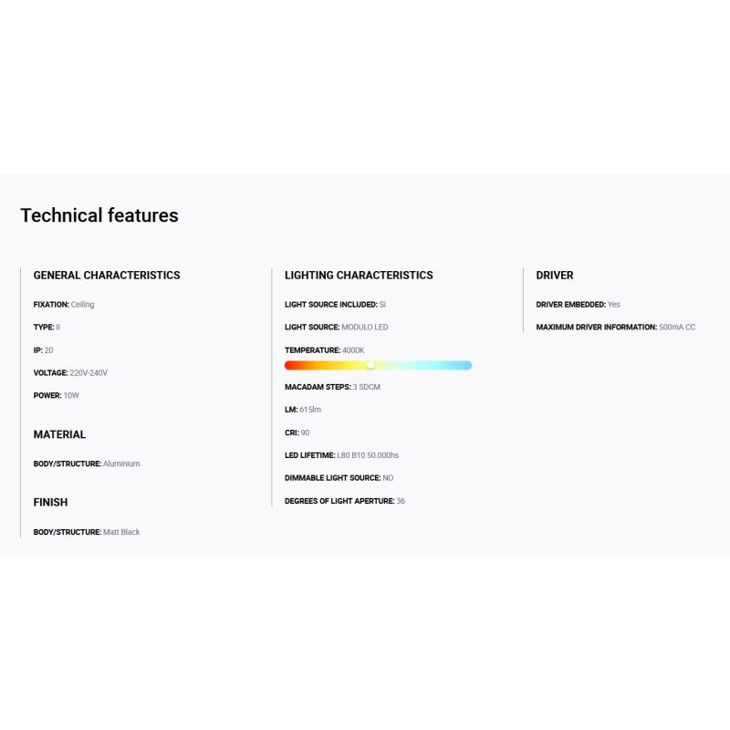Putere | 10Watt modul LED incorporat, 615LM, 4000K, CRI 90 + driver inclus din pret |