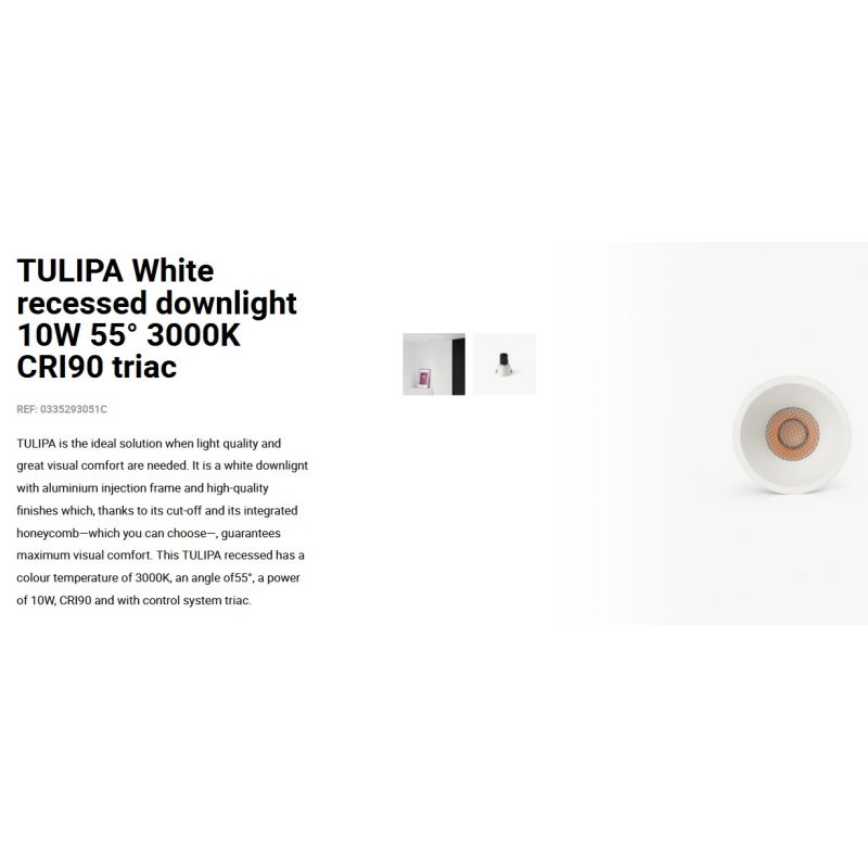 TULIPA este soluția ideală atunci când este nevoie de calitatea luminii și de un confort vizual deosebit. Este un spot incastrabil cu cadru de injecție din aluminiu și finisaje de înaltă calitate care garantează confort vizual maxim.