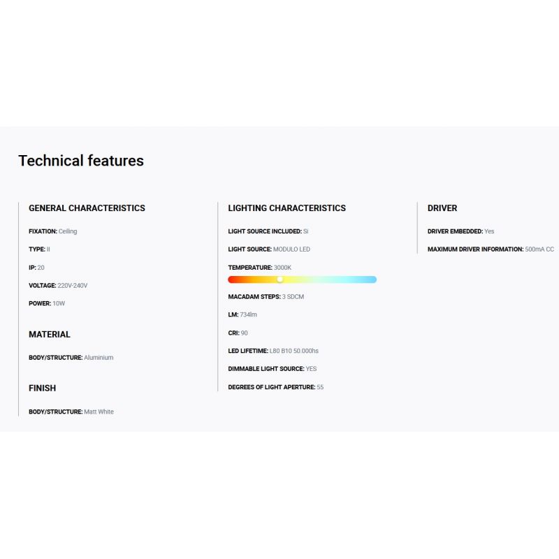 Putere | 10Watt modul LED dimabil incorporat, 734LM, 3000K, CRI 90 + driver inclus din pret |