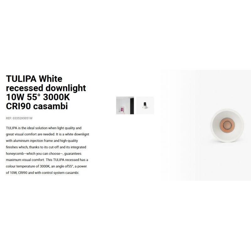 Informatii produs: | spot LED incastrabil TULIPA cu grad de iluminare 55 grade, IP20 + driver cu sistem de control Casambi inclus |