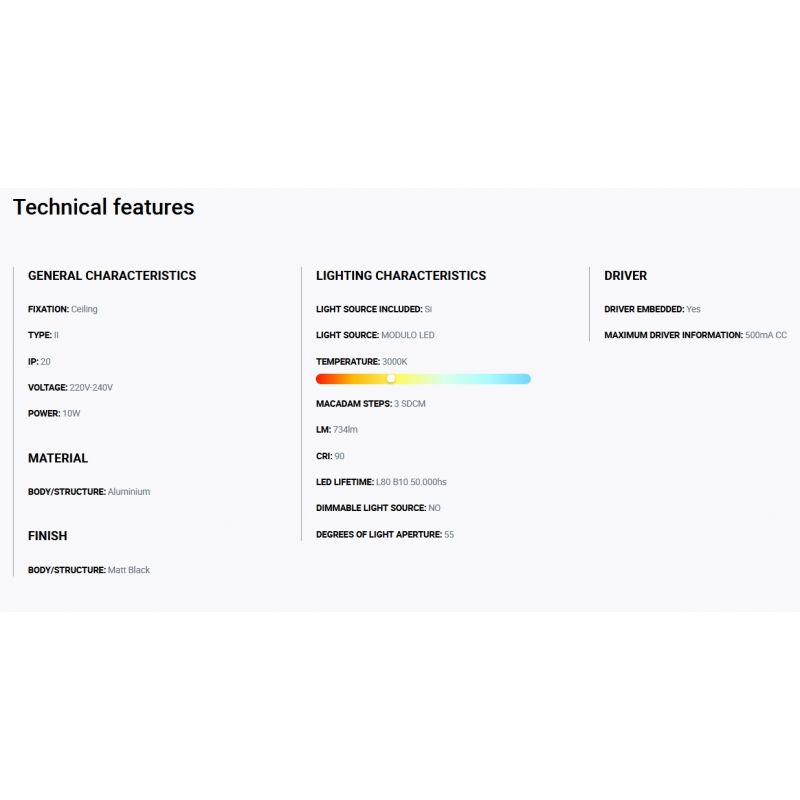 Putere | 10Watt modul LED incorporat, 734LM, 3000K, CRI 90 + driver inclus din pret |