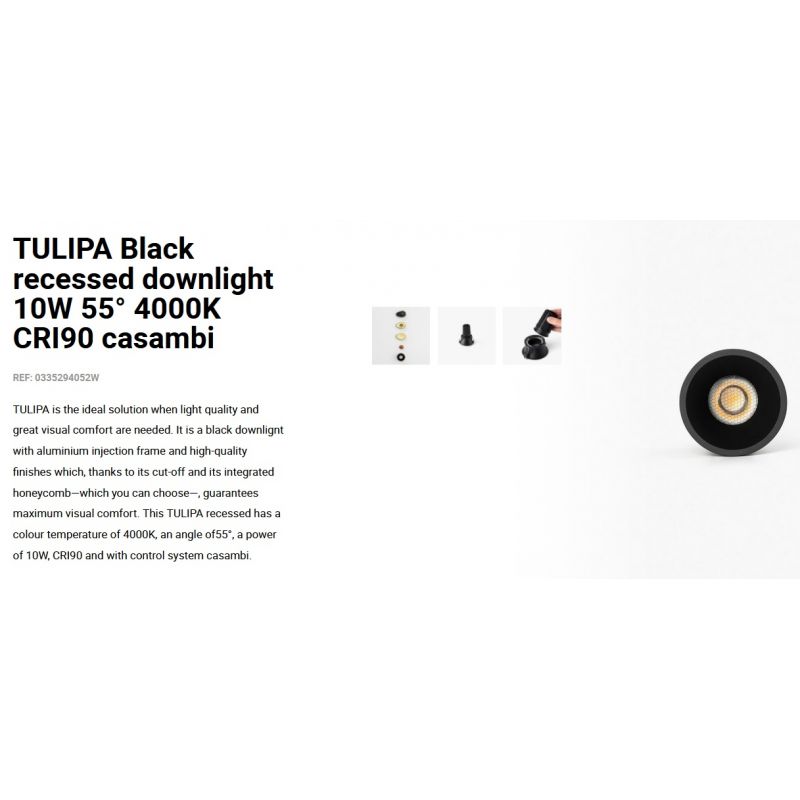 Informatii produs: | spot LED incastrabil TULIPA cu grad de iluminare 55 grade, IP20 + driver cu sistem de control Casambi inclus |