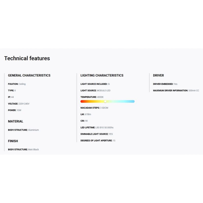 Putere | 10Watt modul LED dimabil incorporat, 678LM, 4000K, CRI 90 + driver inclus din pret |