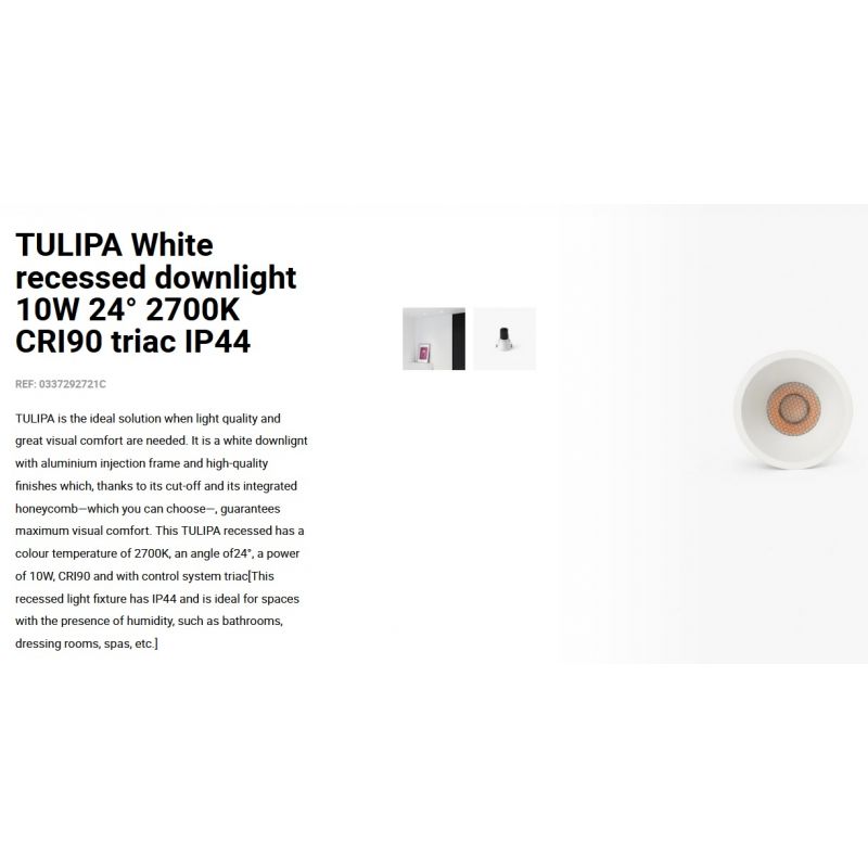 TULIPA este soluția ideală atunci când este nevoie de calitatea luminii și de un confort vizual deosebit. Este un spot incastrabil cu cadru de injecție din aluminiu și finisaje de înaltă calitate care garantează confort vizual maxim, corp de iluminat încastrat are IP44 și este ideal pentru spațiile cu prezența umidității, precum băi, dressinguri, spa-uri etc.