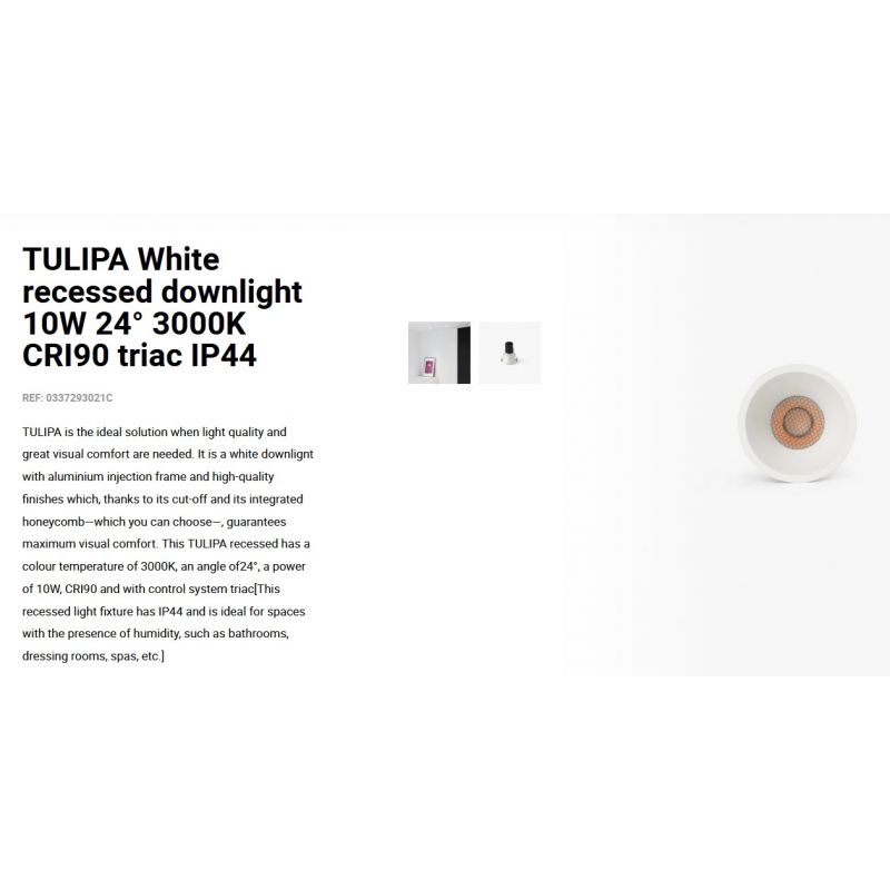 TULIPA este soluția ideală atunci când este nevoie de calitatea luminii și de un confort vizual deosebit. Este un spot incastrabil cu cadru de injecție din aluminiu și finisaje de înaltă calitate care garantează confort vizual maxim, corp de iluminat încastrat are IP44 și este ideal pentru spațiile cu prezența umidității, precum băi, dressinguri, spa-uri etc.