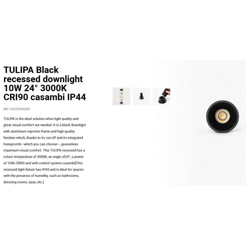 TULIPA este soluția ideală atunci când este nevoie de calitatea luminii și de un confort vizual deosebit. Este un spot incastrabil cu cadru de injecție din aluminiu și finisaje de înaltă calitate care garantează confort vizual maxim, corp de iluminat încastrat are IP44 și este ideal pentru spațiile cu prezența umidității, precum băi, dressinguri, spa-uri etc.