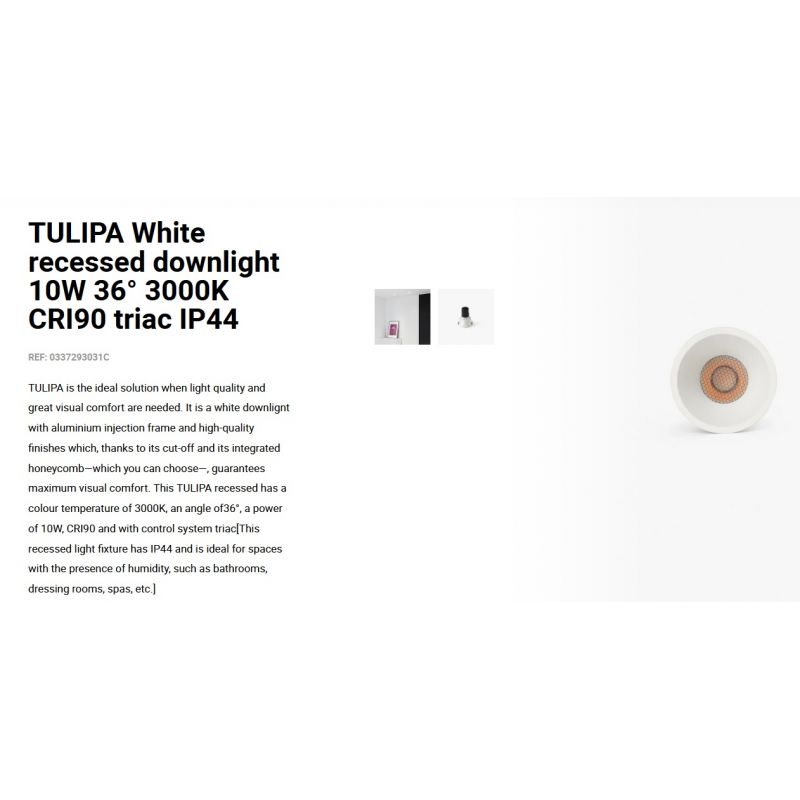 TULIPA este soluția ideală atunci când este nevoie de calitatea luminii și de un confort vizual deosebit. Este un spot incastrabil cu cadru de injecție din aluminiu și finisaje de înaltă calitate care garantează confort vizual maxim, corp de iluminat încastrat are IP44 și este ideal pentru spațiile cu prezența umidității, precum băi, dressinguri, spa-uri etc.