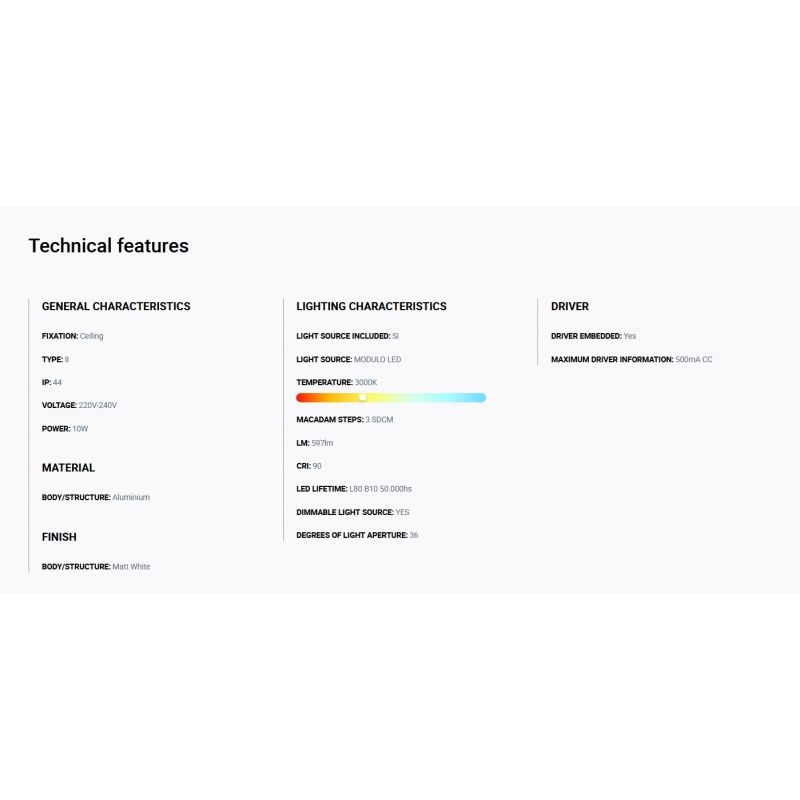 Informatii produs: | spot LED incastrabil TULIPA cu grad de protectie la umiditate de IP44, iluminare 36 grade + driver cu sistem de control Triac inclus |