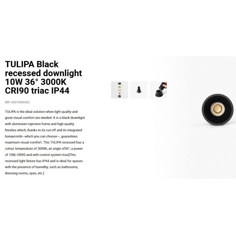 TULIPA este soluția ideală atunci când este nevoie de calitatea luminii și de un confort vizual deosebit. Este un spot incastrabil cu cadru de injecție din aluminiu și finisaje de înaltă calitate care garantează confort vizual maxim, corp de iluminat încastrat are IP44 și este ideal pentru spațiile cu prezența umidității, precum băi, dressinguri, spa-uri etc.