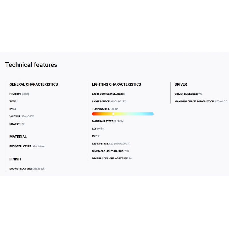 Informatii produs: | spot LED incastrabil TULIPA cu grad de protectie la umiditate de IP44, iluminare 36 grade + driver cu sistem de control Triac inclus |