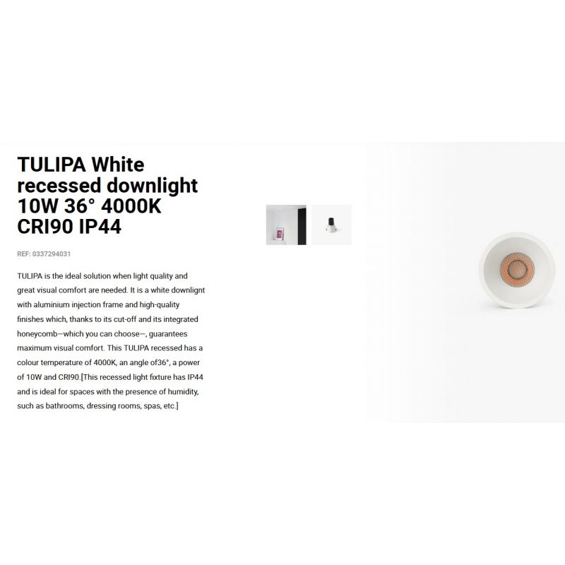 TULIPA este soluția ideală atunci când este nevoie de calitatea luminii și de un confort vizual deosebit. Este un spot incastrabil cu cadru de injecție din aluminiu și finisaje de înaltă calitate care garantează confort vizual maxim, corp de iluminat încastrat are IP44 și este ideal pentru spațiile cu prezența umidității, precum băi, dressinguri, spa-uri etc.