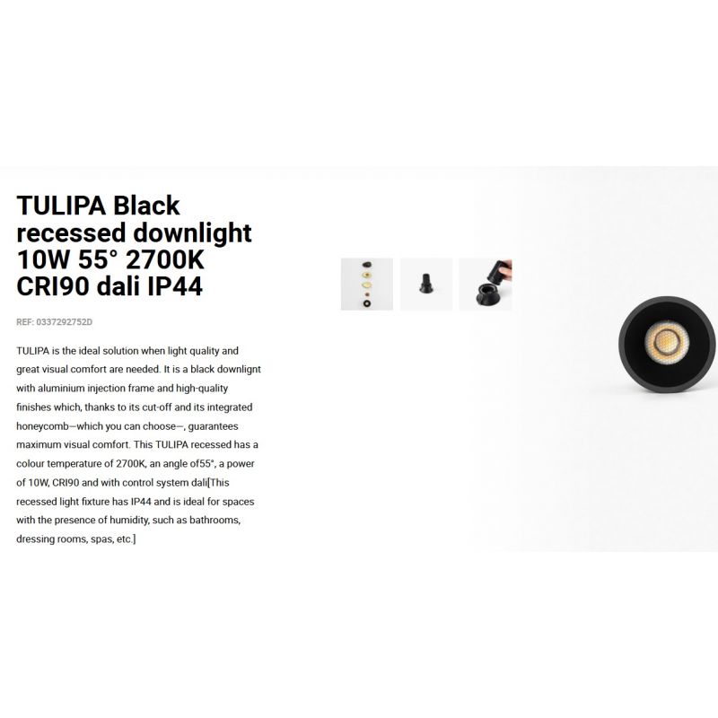 Informatii produs: | spot LED incastrabil TULIPA cu grad de protectie la umiditate de IP44, iluminare 55 grade + driver cu sistem de control Dali inclus |