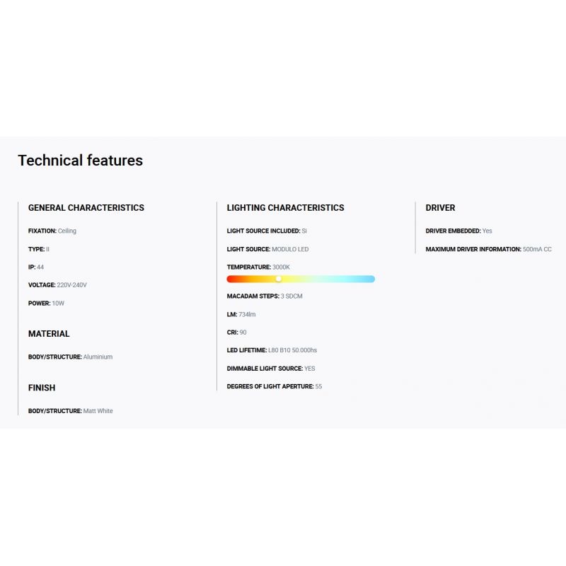 | Putere | 10Watt modul LED dimabil incorporat, 734LM, 3000K, CRI 90 + driver inclus din pret |