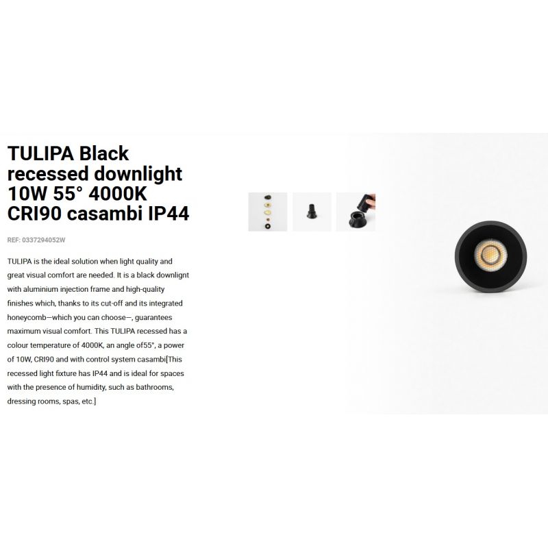 | Informatii produs: | spot LED incastrabil TULIPA cu grad de protectie la umiditate de IP44, iluminare 55 grade + driver cu sistem de control Casambi inclus |