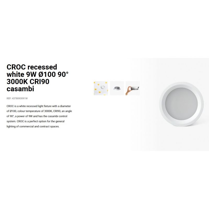 Informatii produs: | spot LED incastrabil cu grad de protectie la umiditate de IP44, iluminare 90 grade + driver cu sistem de control Casambi inclus |