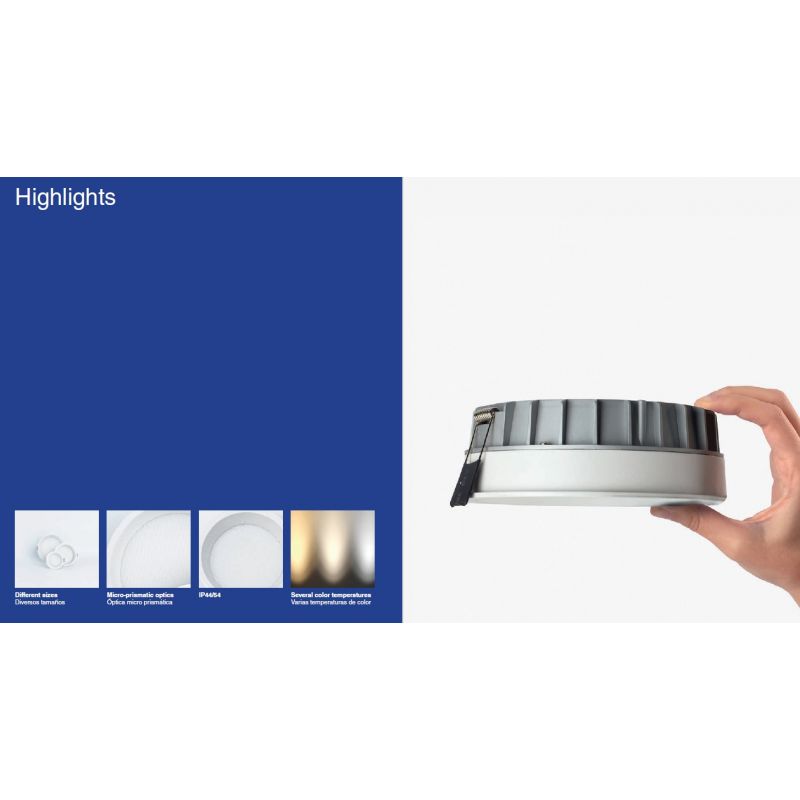 Dimensiuni | diametru:10cm; inaltime5,2cm; diametru decupaj tavan:8,9cm |