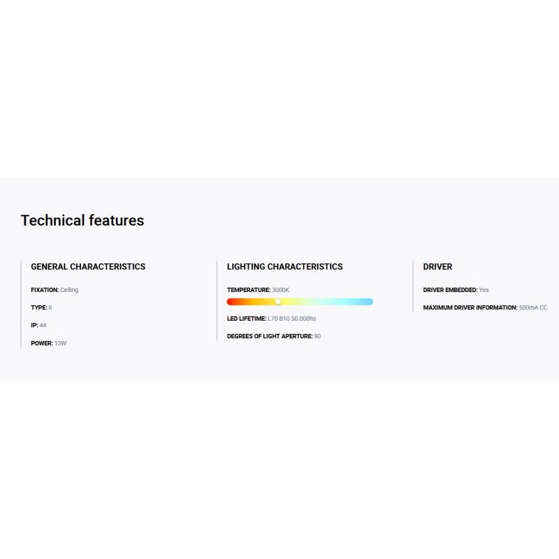 Dimensiuni | diametru:13,5cm; inaltime5,2cm; diametru decupaj tavan:12,6cm |
