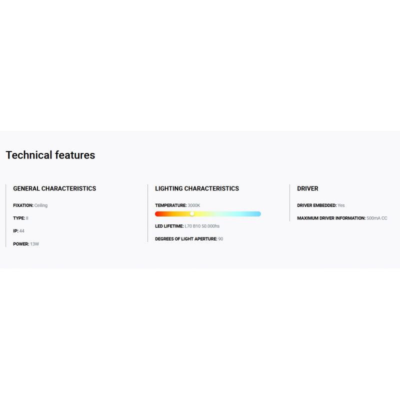 Dimensiuni | diametru:13,5cm; inaltime5,2cm; diametru decupaj tavan:12,6cm |
